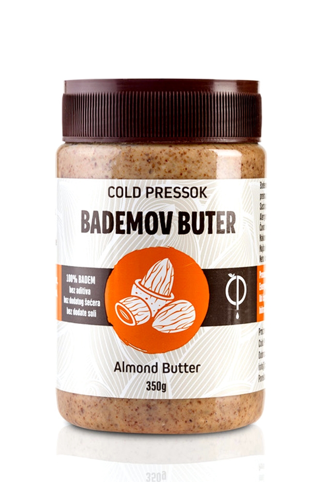 100% čist buter od badema, bez dodatog ulja i soli. Potpuno prirodan namaz u svom najčistijem obliku. Hrskava tekstura BEZ ikakvih dodataka. Izvor dobrih masti i proteina.