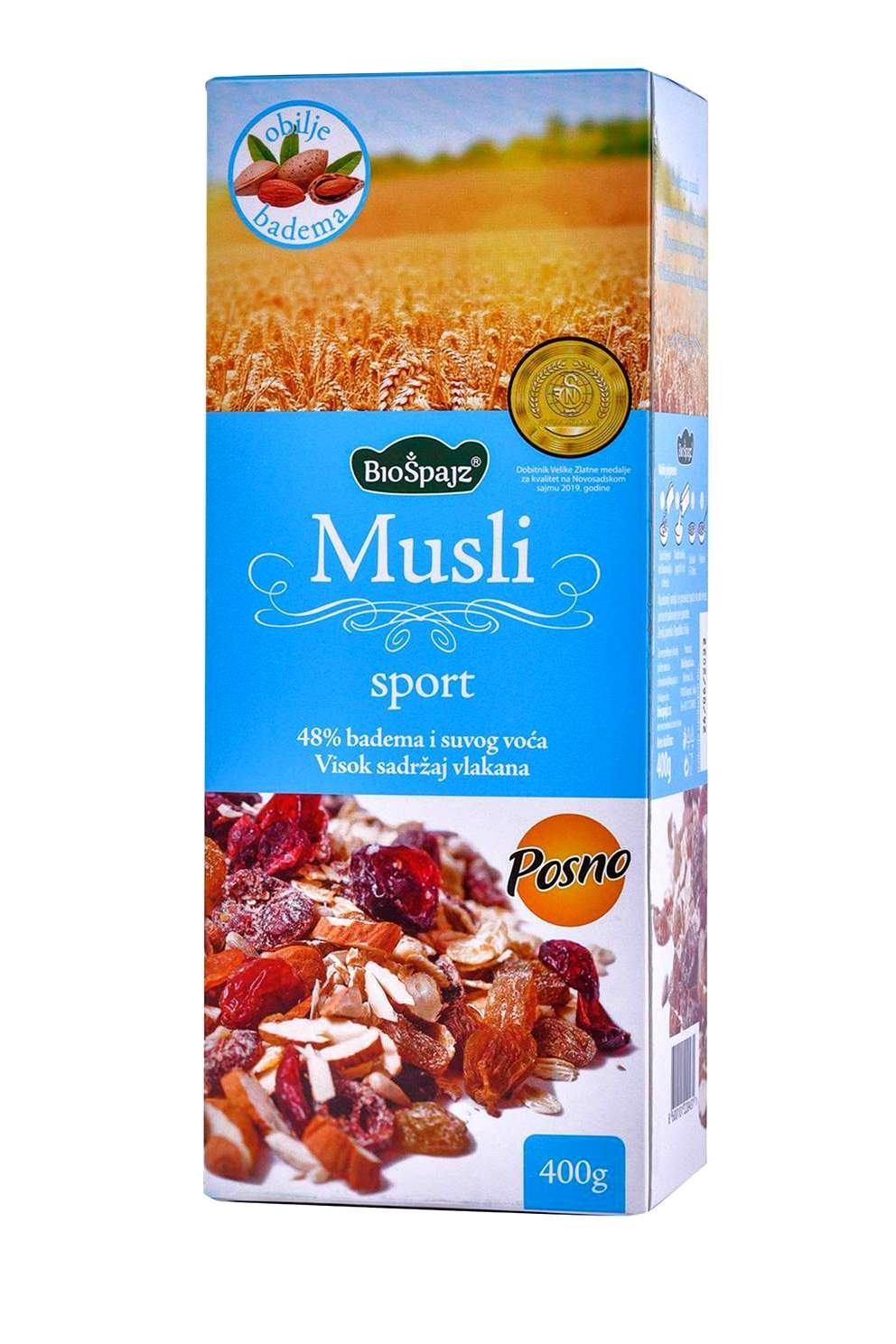 Posebno formulisan za potrebe sportista, ovaj bezglutenski musli je bogat izvor brzo dostupne energije. Pogodan je i za sve koji su na bezglutenskoj dijeti. Ne preporučuje se osobama obolelim od celijakije. Ovaj proizvod je prošao laboratorijske analize i prirodno ne sadrži gluten, ali se i pored toga ne preporučuje osobama obolelim od celijakije.
