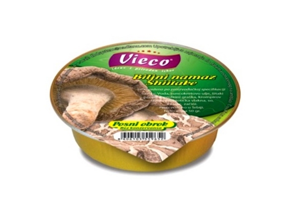 Vieco biljni namaz sa šitake (shiitake) pečurkama se koristi kao ukusan namaz za doručak, večeru ili užinu mazanjem na hleb.